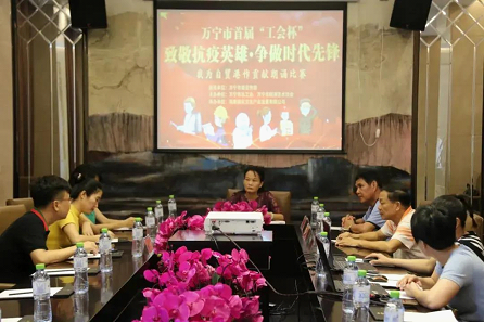 6月20日上午,由万宁市委宣传部指导,万宁市总工会联合市朗诵艺术协会主办的2020年首届万宁市“工会杯”致敬抗疫英雄·争做时代先锋--我为自贸港作贡献朗诵比赛评选活动在万城举行。