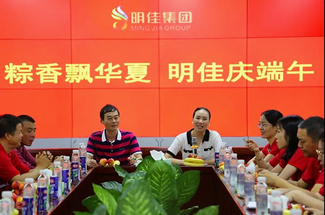 包好粽子后,在明佳集团办公楼三楼的多功能会议室召开了端午节茶话会。大家畅所欲言,谈心交心,进一步融洽了员工之间的感情。