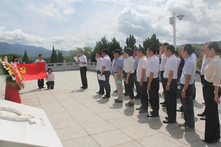 在革命烈士纪念园,三亚市委政法委副书记、党支部书记吴毅带领新老党员集体向烈士纪念碑敬献花圈行鞠躬礼,向革命烈士默哀一分钟。瞻仰烈士纪念碑后,全体人员面向纪念碑,在鲜红的党旗前重温入党誓词。随后,市委政法委副书记、党支部副书记贺建忠深情朗诵《可爱的中国》,全体党员合唱《党啊亲爱的妈妈》。当天活动,全体党员还参观历史陈列馆,上了一堂“忆党史、铭党恩”红色初心教育专题党课。