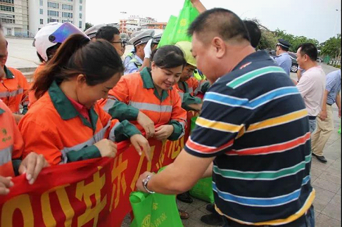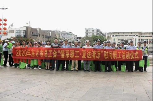 为了做好东方市职工夏季防暑降温工作和助力东方市委、东方市政府“三创”工作,7月14日下午,东方市人大常委会副主任、东方市总工会主席陈永发同志率东方市总工会党组成员以及相关单位工会主席在东方市文化广场开展“情系职工▪夏送清凉”活动,东方市交警大队、东方市一净城环卫公司等一线职工们参加活动。