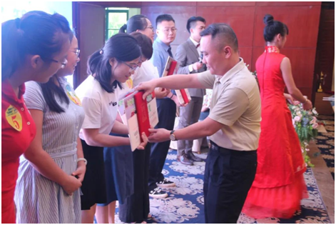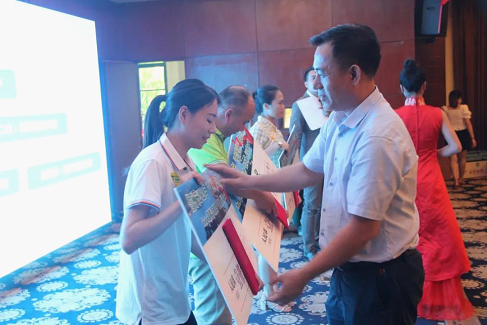 ∆儋州市总工会常务副主席郭博宁为获得第一名的单位颁奖