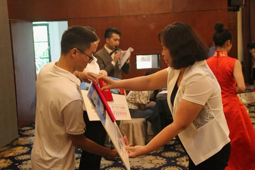 ∆儋州市总工会副主席林霄为获得组织优秀奖的单位颁奖