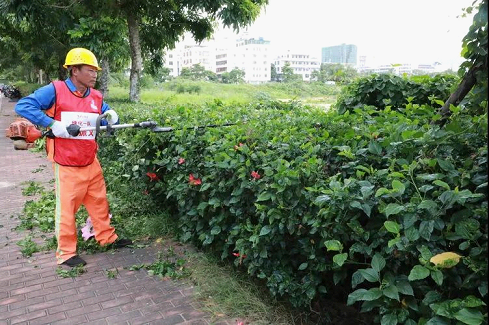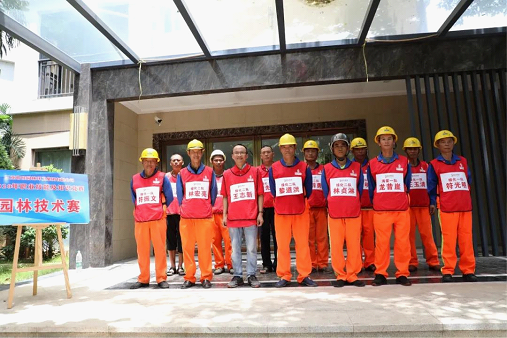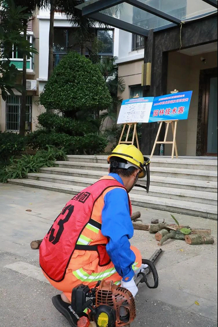 7月10日上午8点开始第四项比赛是园林技术赛,这项比赛也是分笔试和实操两轮,选手们在会议室内完成第一轮笔试后,来到户外开始第二轮实际操作,选手们需要在8分钟内完成草坪、灌木绿篱、乔木修剪,主要考核选手对油锯、高枝油锯、绿篱机、打草机的规范使用。经过一番激烈的较量,园林绿化部二队选手王志新以86分的综合成绩高居榜首,拿下第一名。