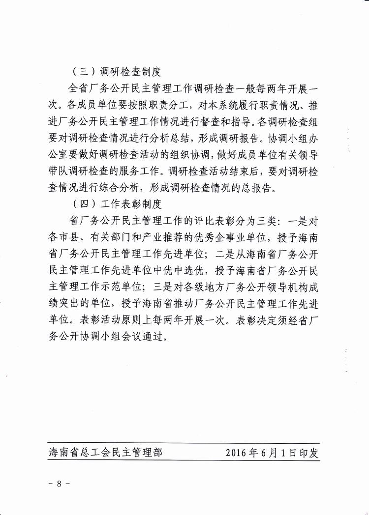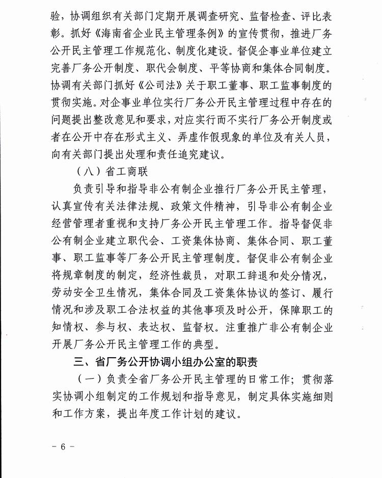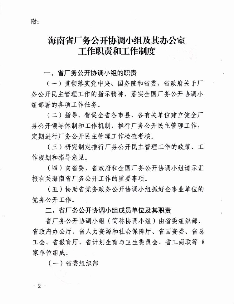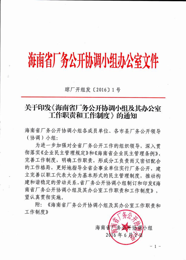 关于印发《海南省厂务公开协调小组及其办公室工作职责和工作制度》的通知(琼厂开组办发〔2016〕1号)
