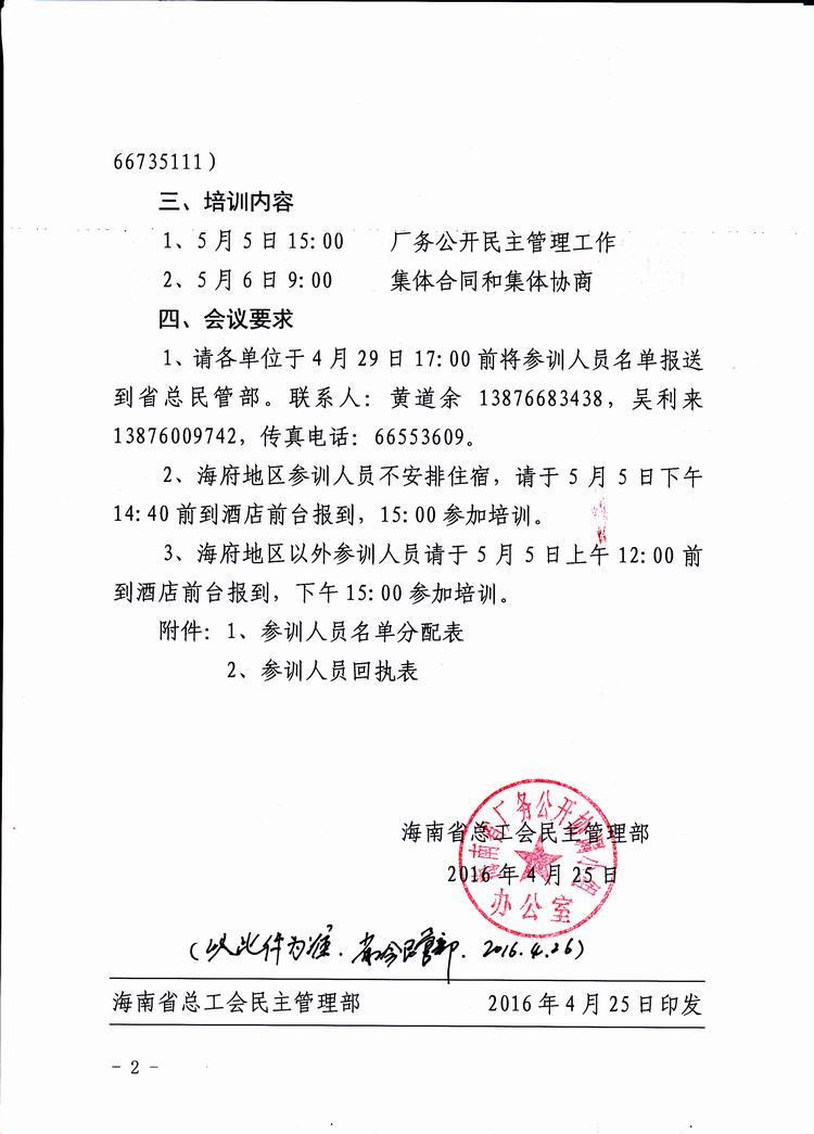 关于举办全省厂务公开民主管理培训班的通知(琼厂开组办发〔2016〕3号)