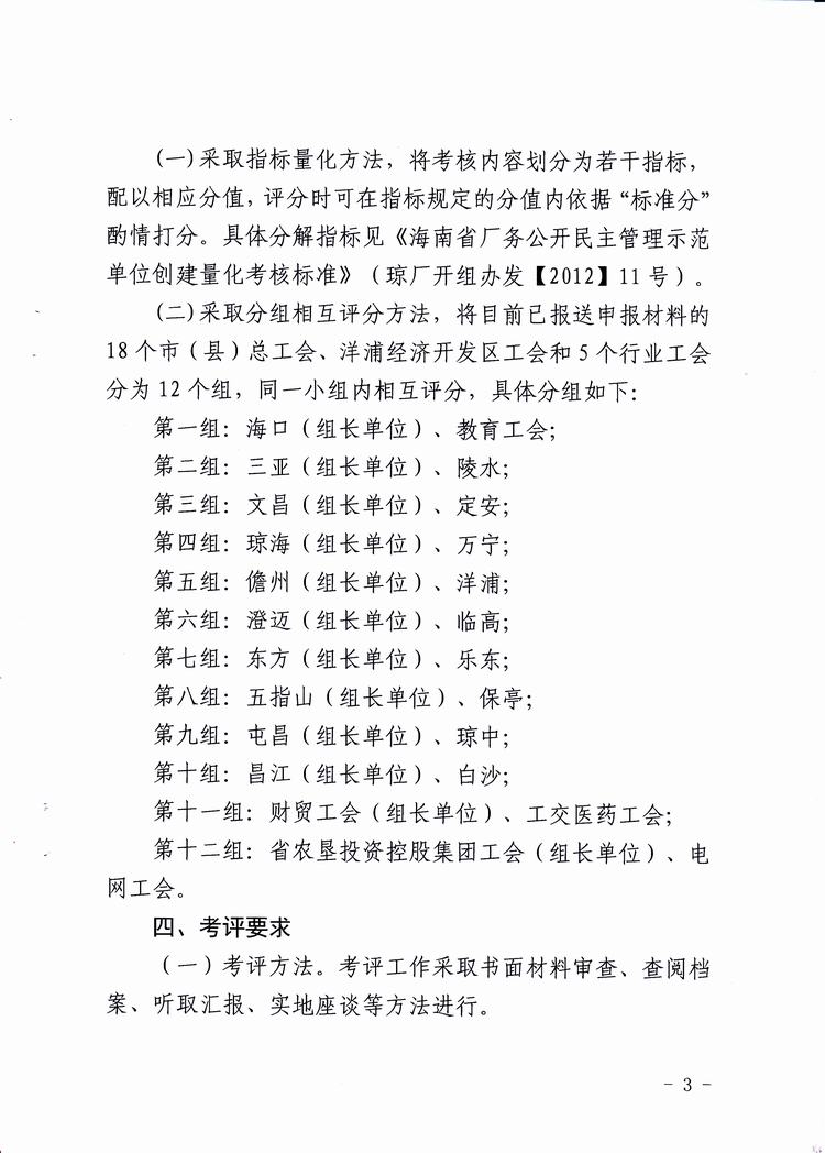 关于开展全省厂务公开民主管理示范单位考评的通知(琼厂开组办发〔2016〕5号)